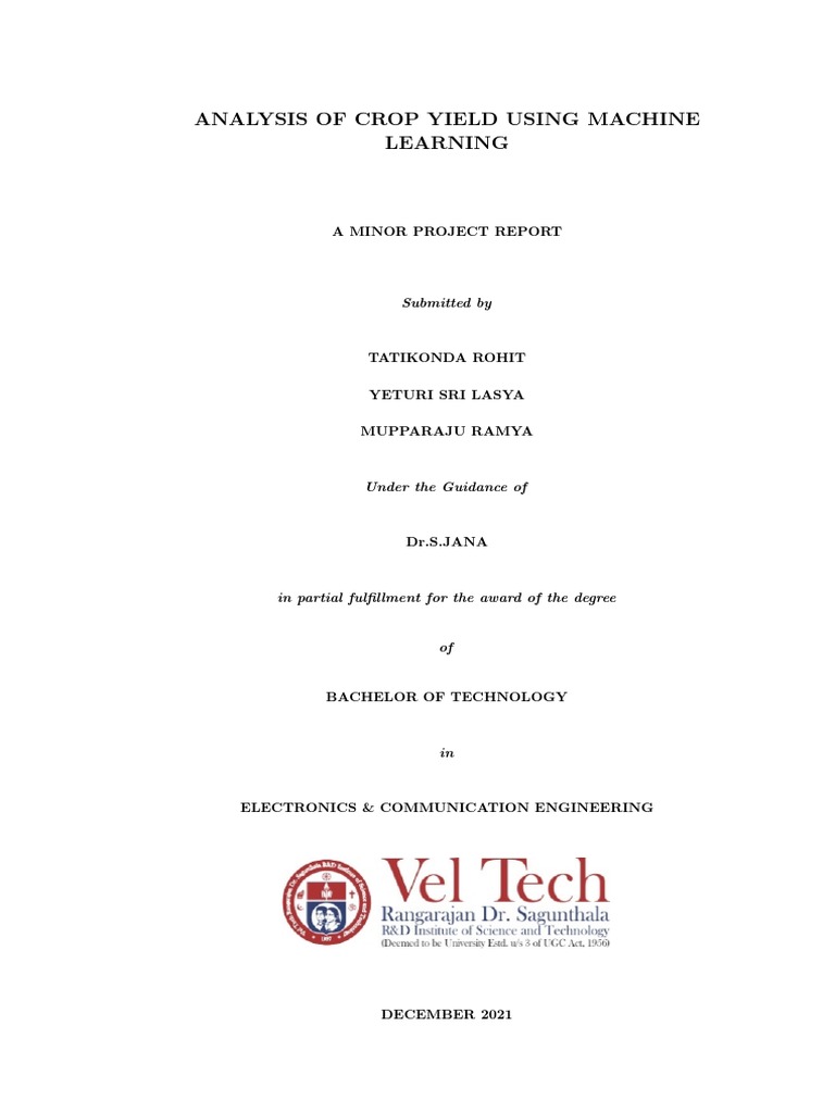 Certified that this Minor project report entitled ”ANALYSIS OF CROP YIELD USING MA-