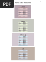 This document lists various common display resolutions organized by their width-to-height aspect ratio. The resolutions are grouped from narrowest to widest aspect ratio and include some resolutions that are close to but not exactly those aspect ratios shown in red.