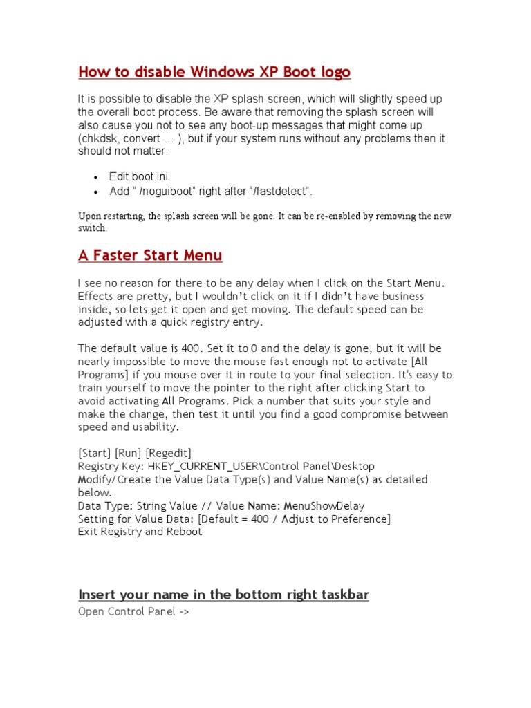 How To Disable Windows XP Boot Logo