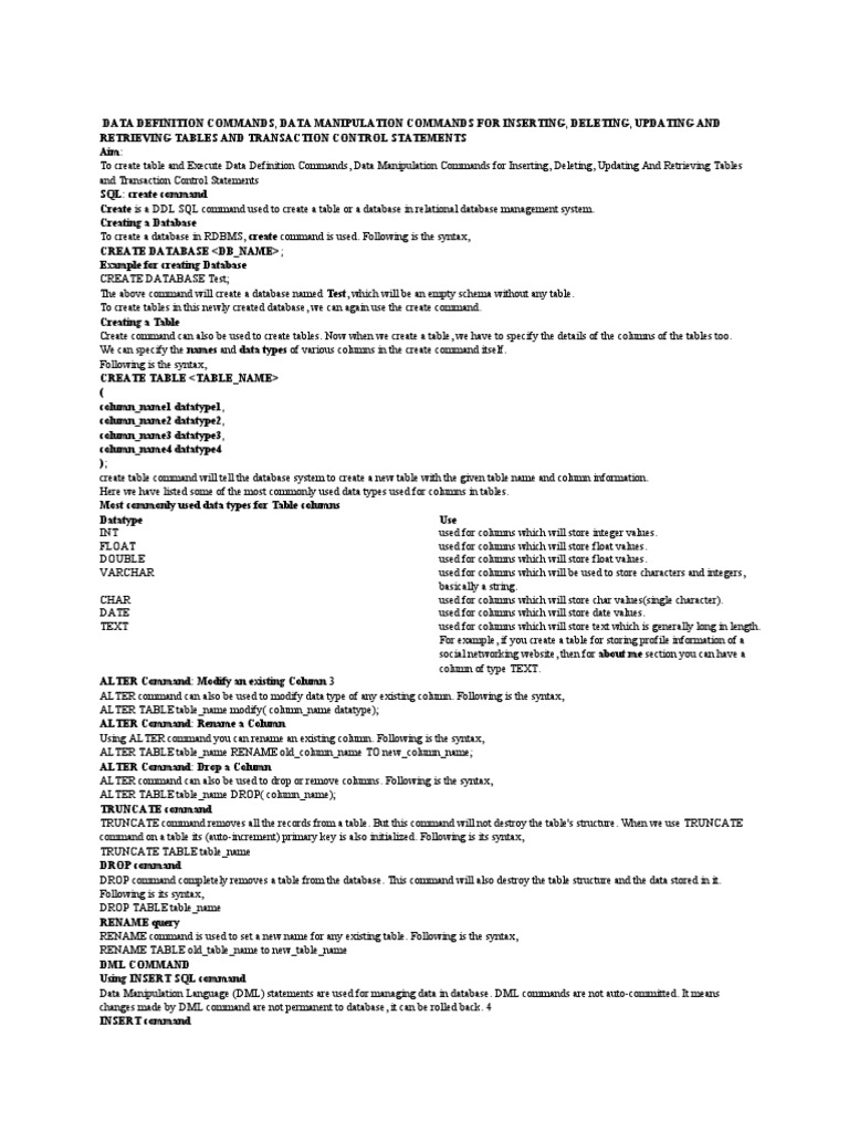 COMMIT, ROLLBACK AND SAVEPOINT SQL COMMANDS