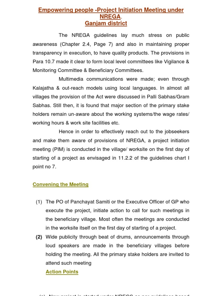 meeting (PIM) is conducted in the village/ worksite on the first day of