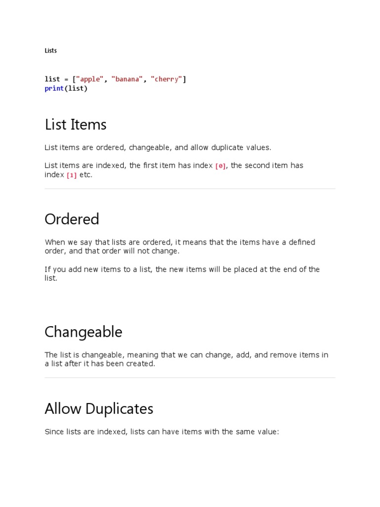 Tuple items are ordered, unchangeable, and allow duplicate values.