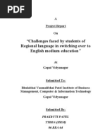 About Topic "Challenges Faced by Students of Regional Language Medium in Switching Over To English Medium Education"