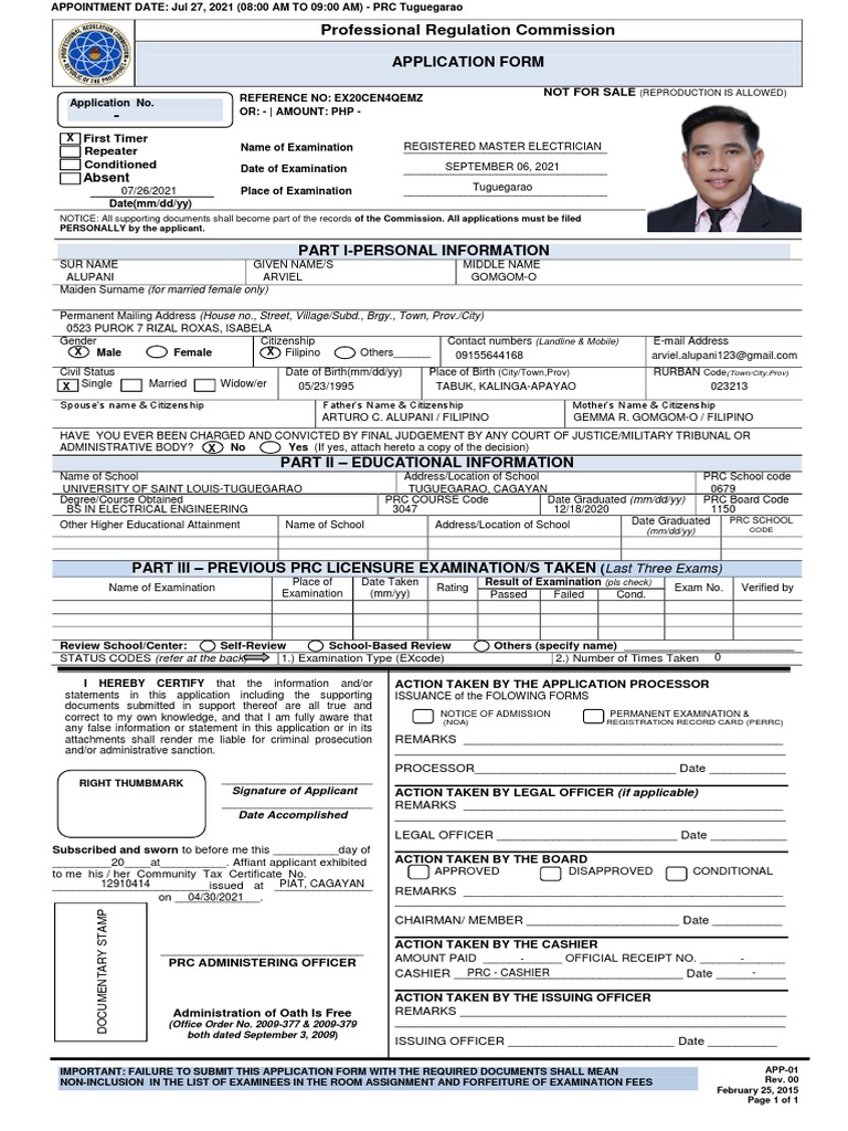 APPOINTMENT DATE: Jul 27, 2021 (08:00 AM TO 09:00 AM) - PRC Tuguegarao