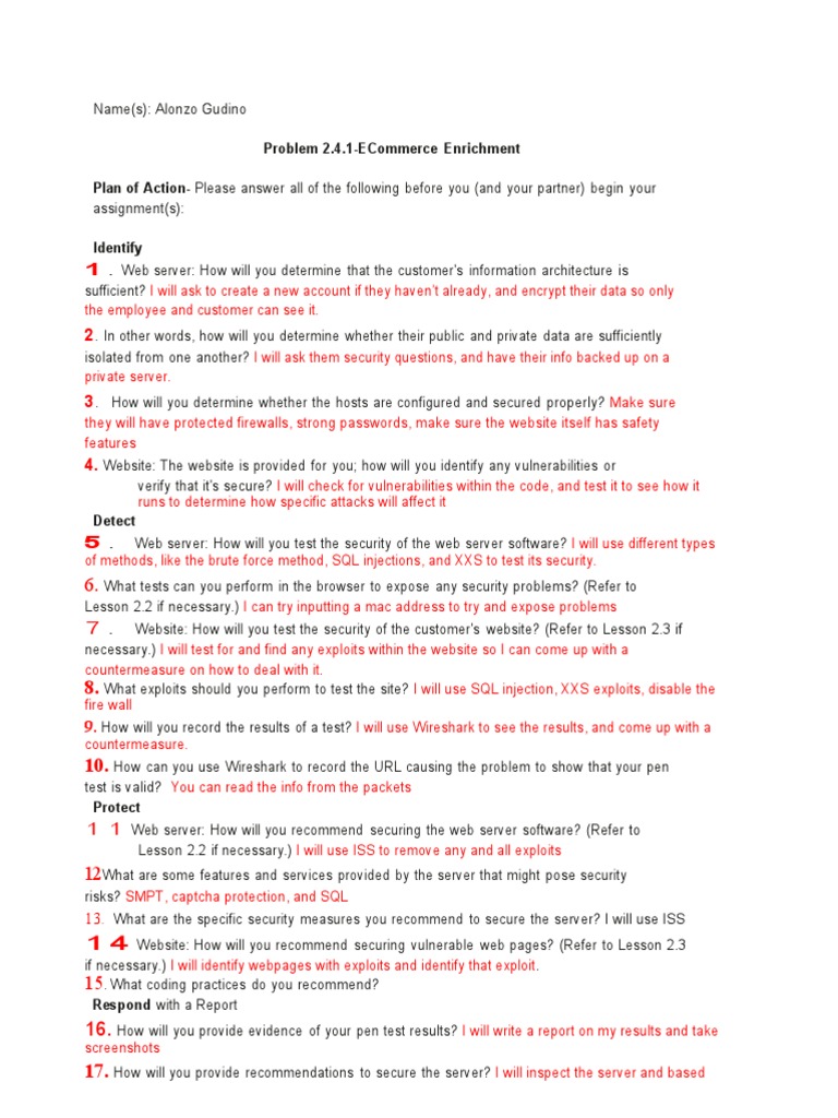 Implementation- Time to put your plan into action. During your pen test, please identify the web