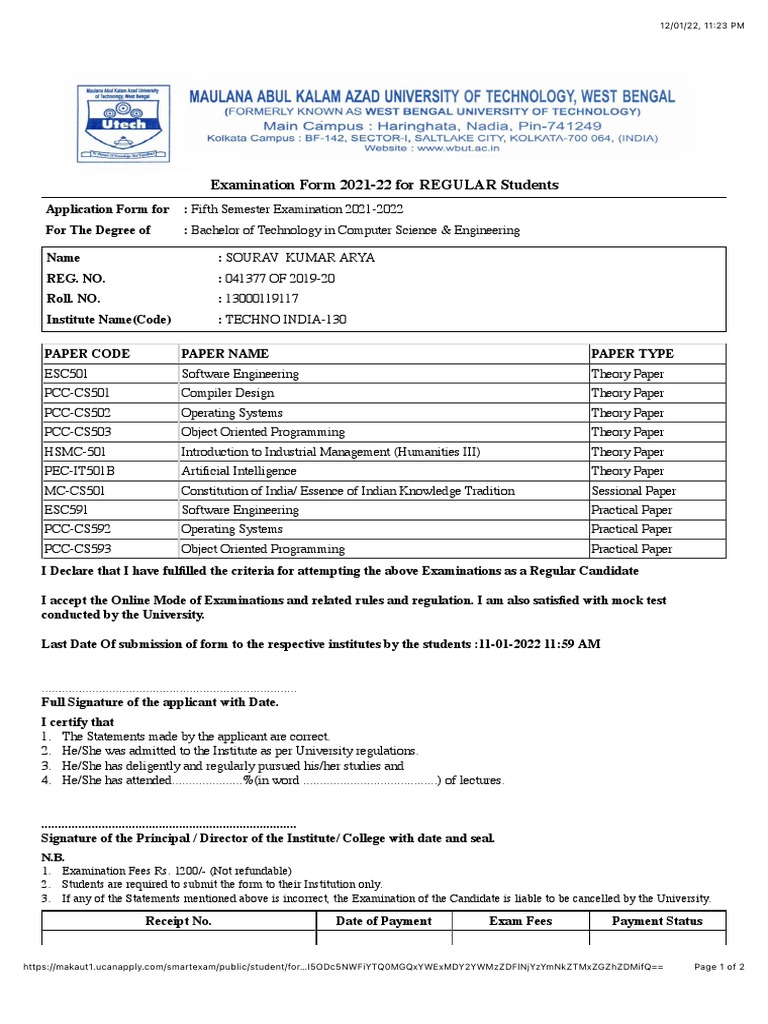 Application Form for : Fifth Semester Examination 2021-2022