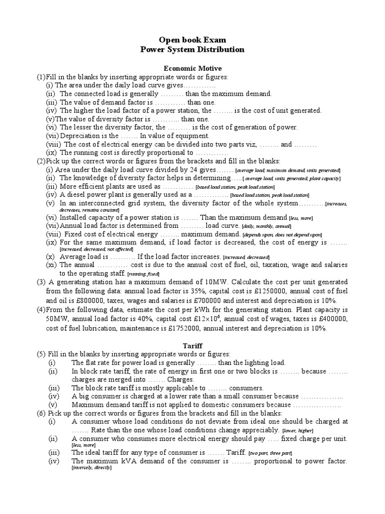 (7) A consumer has a maximum demand 0f 100MW at 60% load factor. If the tariff is £20 per kW