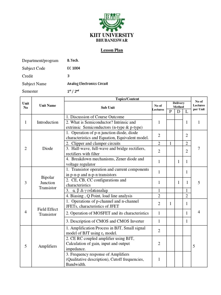 Subject Name Analog Electronics Circuit