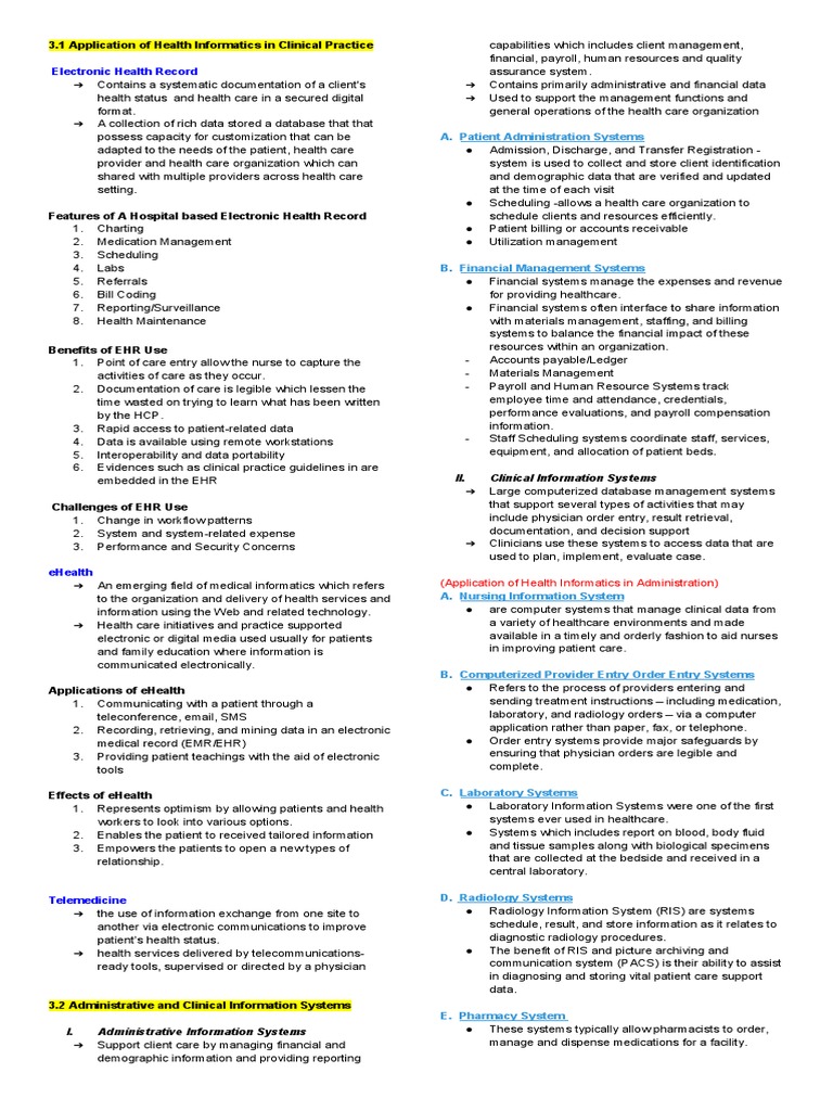 1 Application of Health Informatics in Clinical Practice capabilities which includes client management,