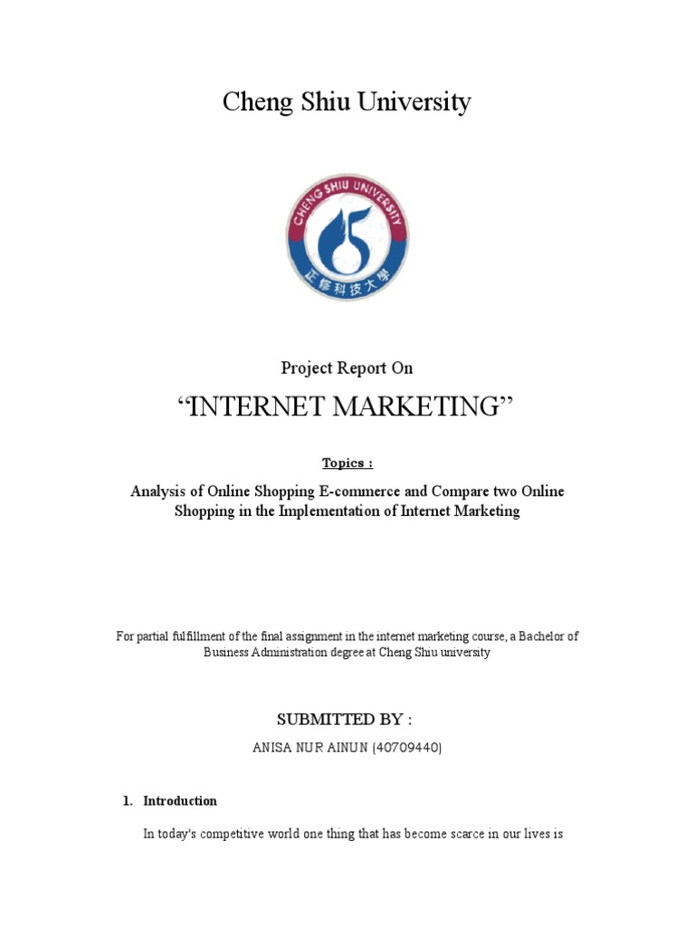 For partial fulfillment of the final assignment in the internet marketing course, a Bachelor of