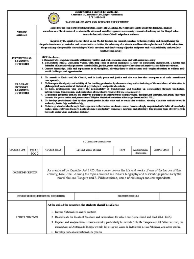 COURSE CODE RIZAL/ COURSE TITLE Life and Works of Rizal TYPE Module/Online CREDIT UNITS 3