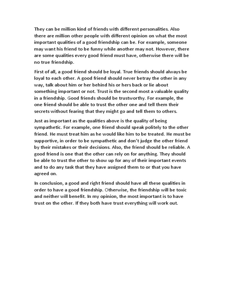 important qualities of a good friendship can be. For example, someone