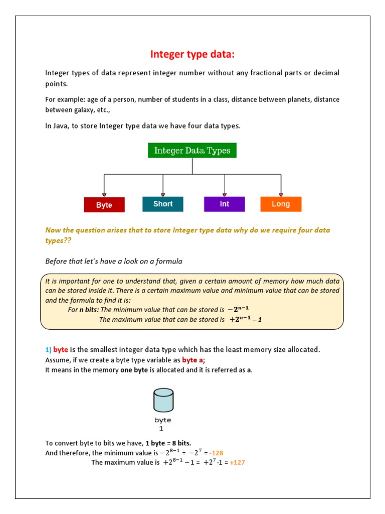 Integer types of data represent integer number without any fractional parts or decimal