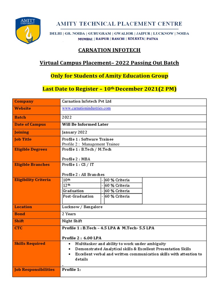 Amity University Campus | Amity Technical Placement Centre (ATPC)