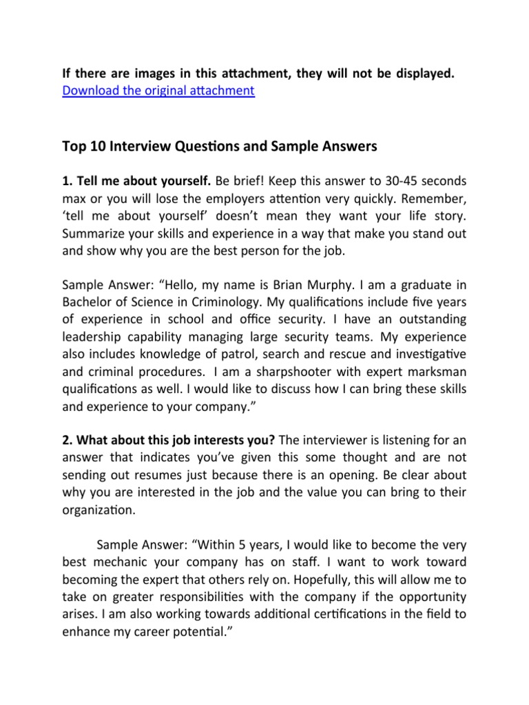 1. Tell me about yourself. Be brief! Keep this answer to 30-45 seconds