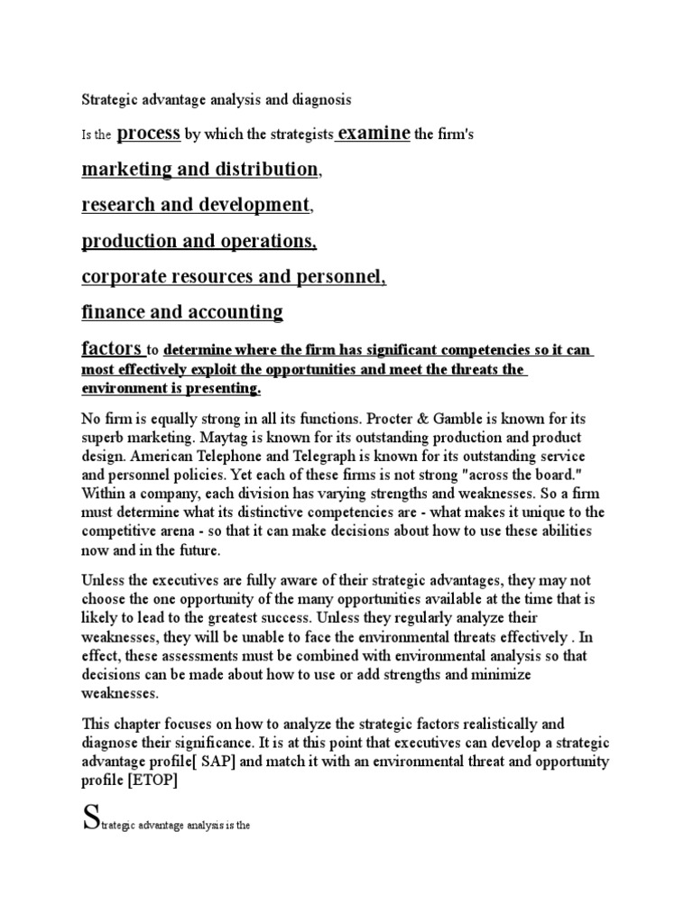 and diagnosed, techniques of strategic advantage analysis, the reality of strategic