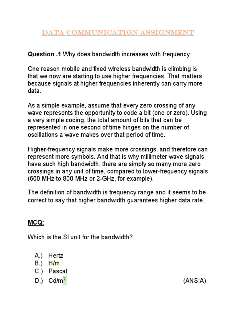 Question .1 Why does bandwidth increases with frequency