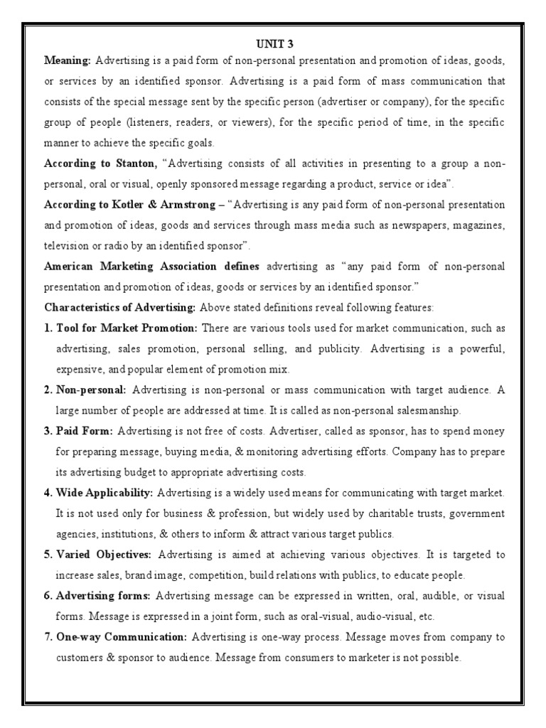 Characteristics of Advertising: Above stated definitions reveal following features: