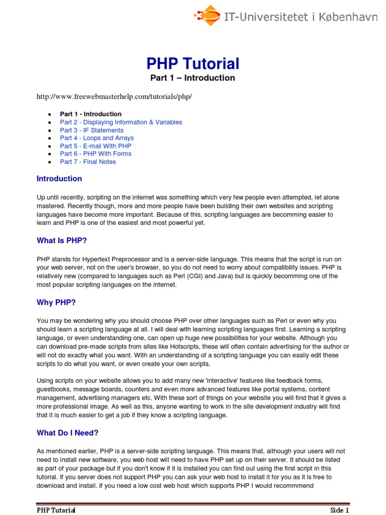 to. For a much more in depth look you should visit PHP.net, the official homepage of PHP. One major