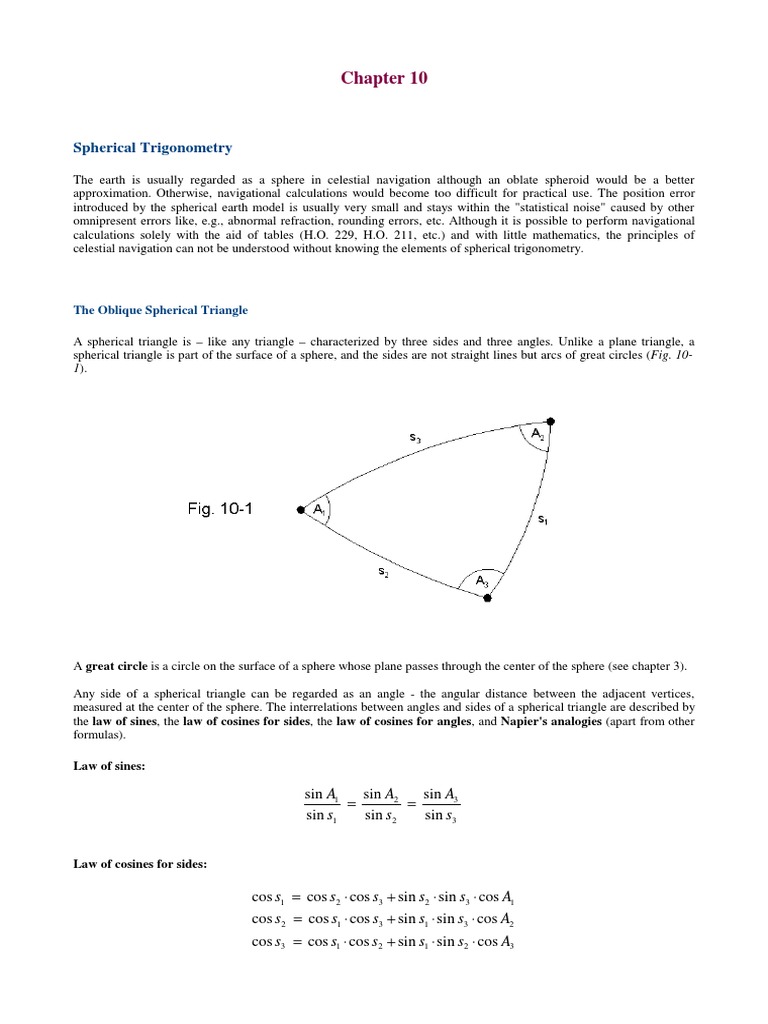 Particularly the law of cosines for sides is of interest to the navigator.