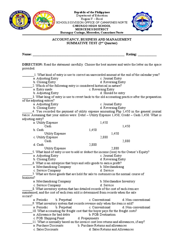 SUMMATIVE TEST (2nd Quarter)