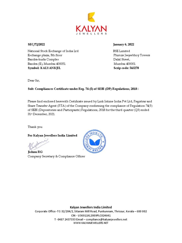 SEC/72/2022 January 6, 2022