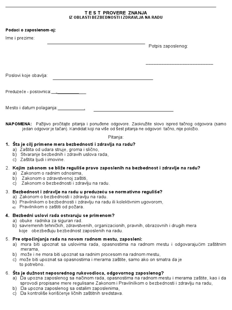 5. Pre otpočinjanja rada na novom radnom mestu, zaposleni: