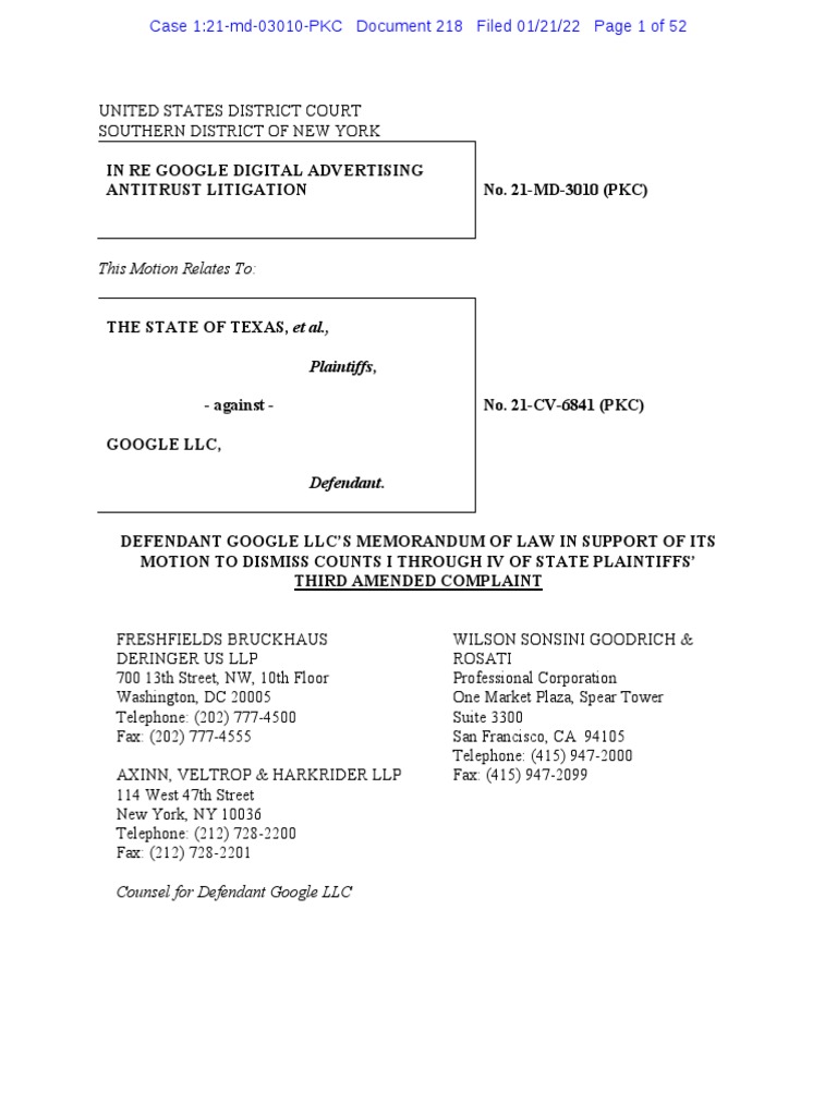 Google Antitrust Motion to Dismiss