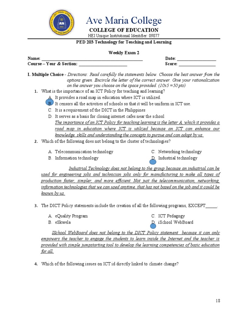 The importance of an ICT Policy for teaching learning is the letter A, which it provides a