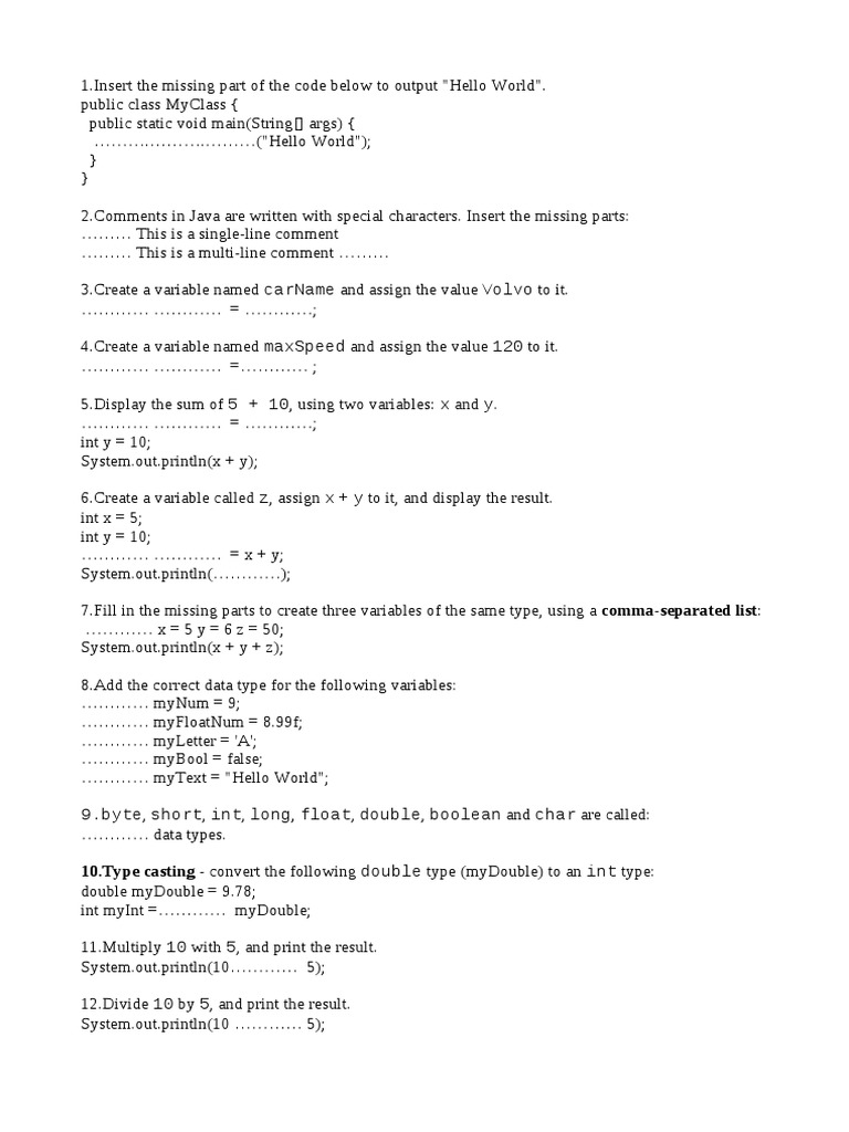2.Comments in Java are written with special characters. Insert the missing parts: