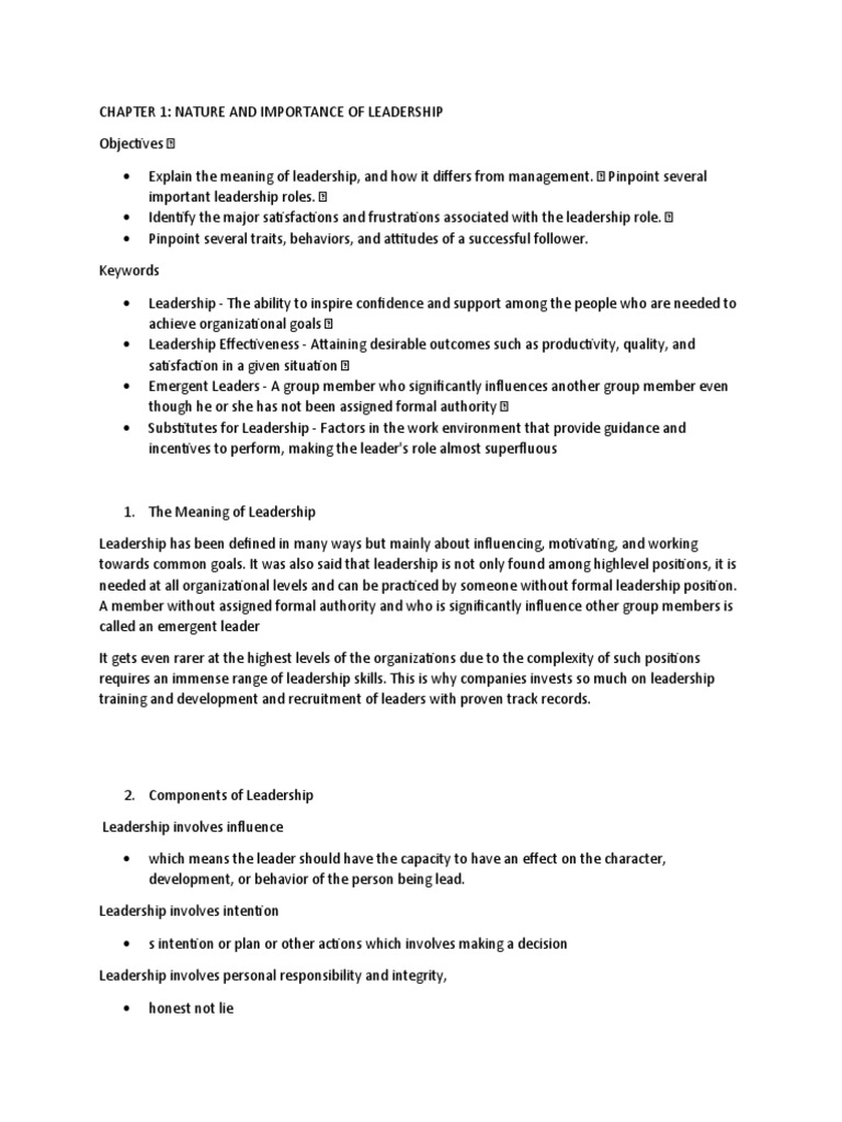 CHAPTER 1: NATURE AND IMPORTANCE OF LEADERSHIP
