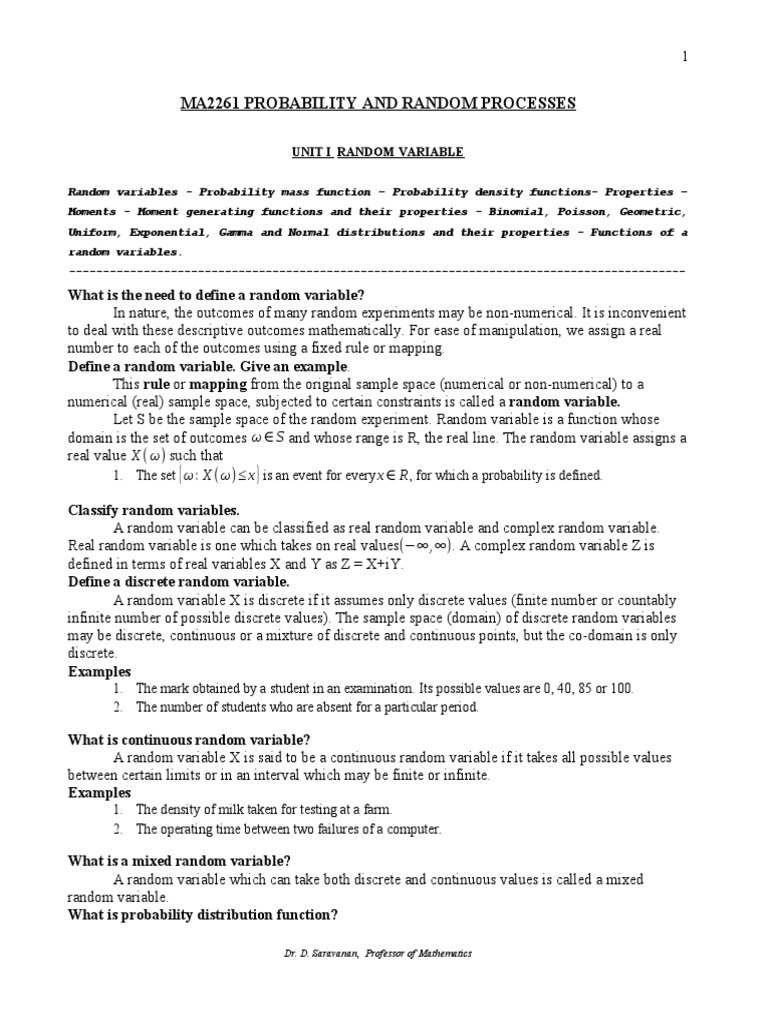 UNIT I RANDOM VARIABLE