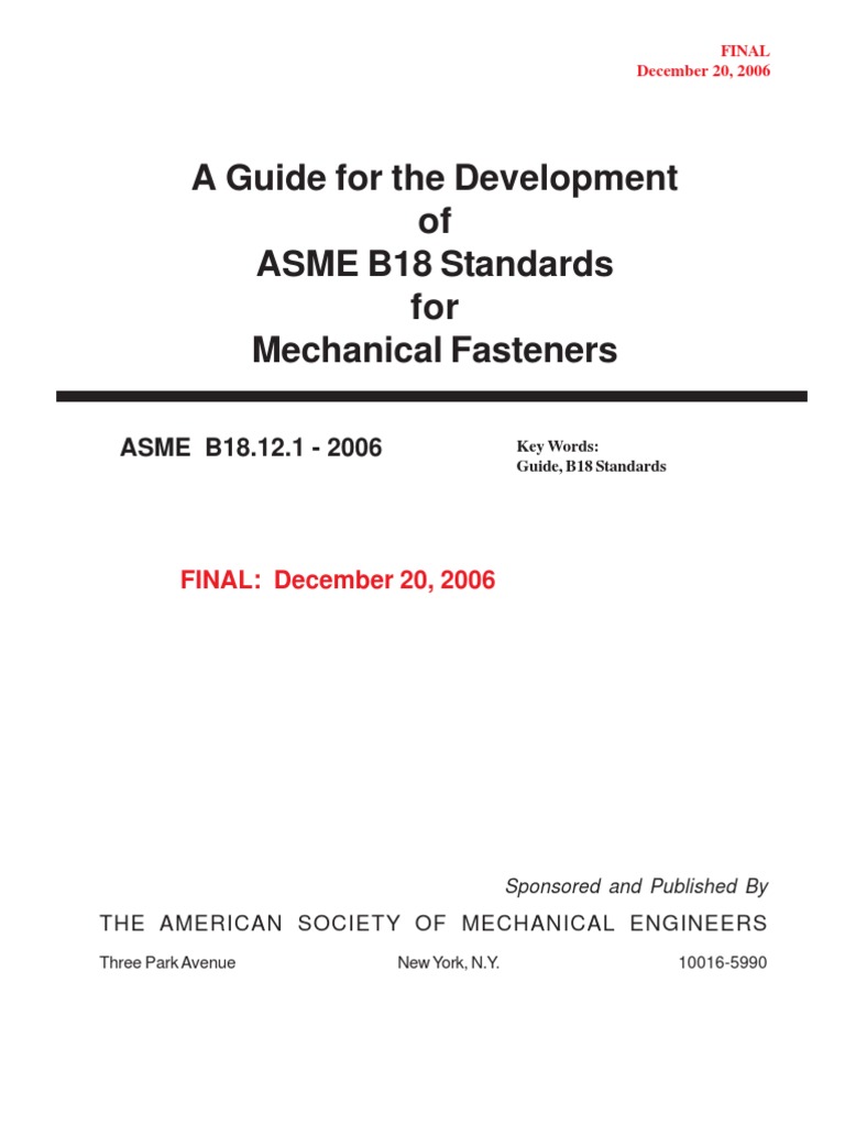GUIDE B18 STANDARDS ASME 18.12.1-2006