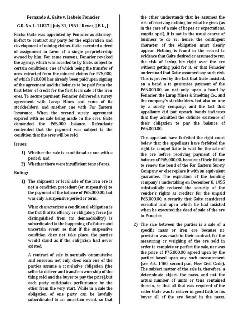 Gaite v. Fonacier: Mining Sale Dispute