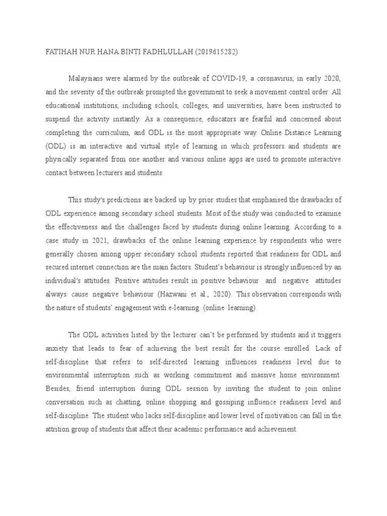 completing the curriculum, and ODL is the most appropriate way. Online Distance Learning