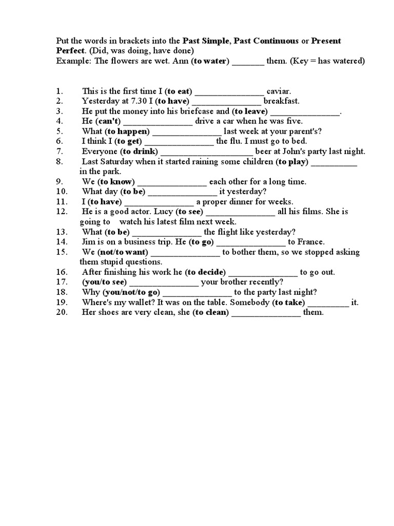 Perfect. (Did, was doing, have done)