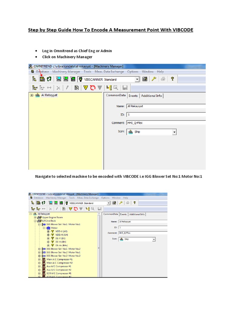 Navigate to selected machine to be encoded with VIBCODE i.e IGG Blower Set No:1 Motor No:1