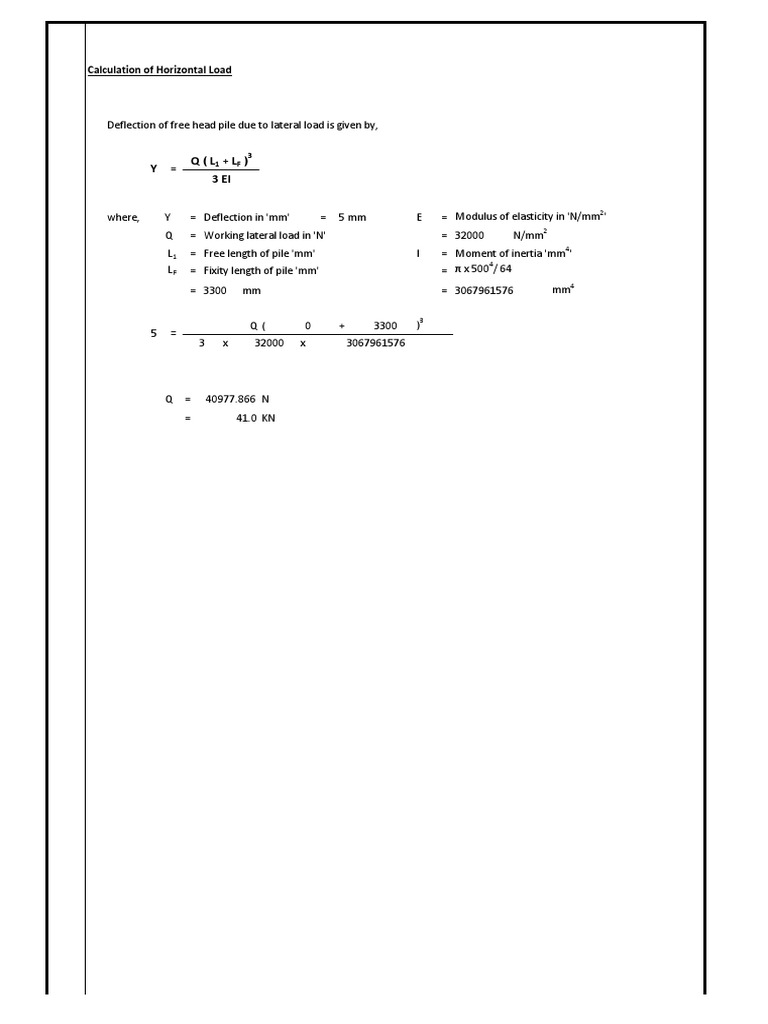 L1 = Free length of pile 'mm' I = Moment of inertia 'mm '