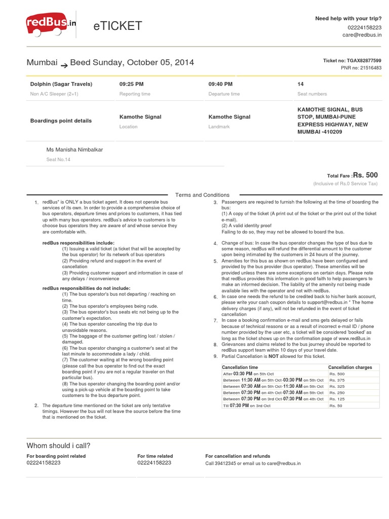 redBus support team within 10 days of your travel date.