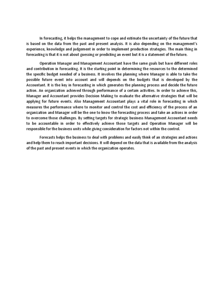 applying for future events. Also Management Accountant plays a vital role in forecasting in which