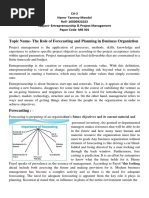 and contribution in forecasting. It is the starting point in determining the resources to the determined