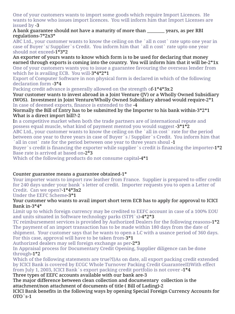 amount can be credited to his EEFC account. You inform him that it is-4*
