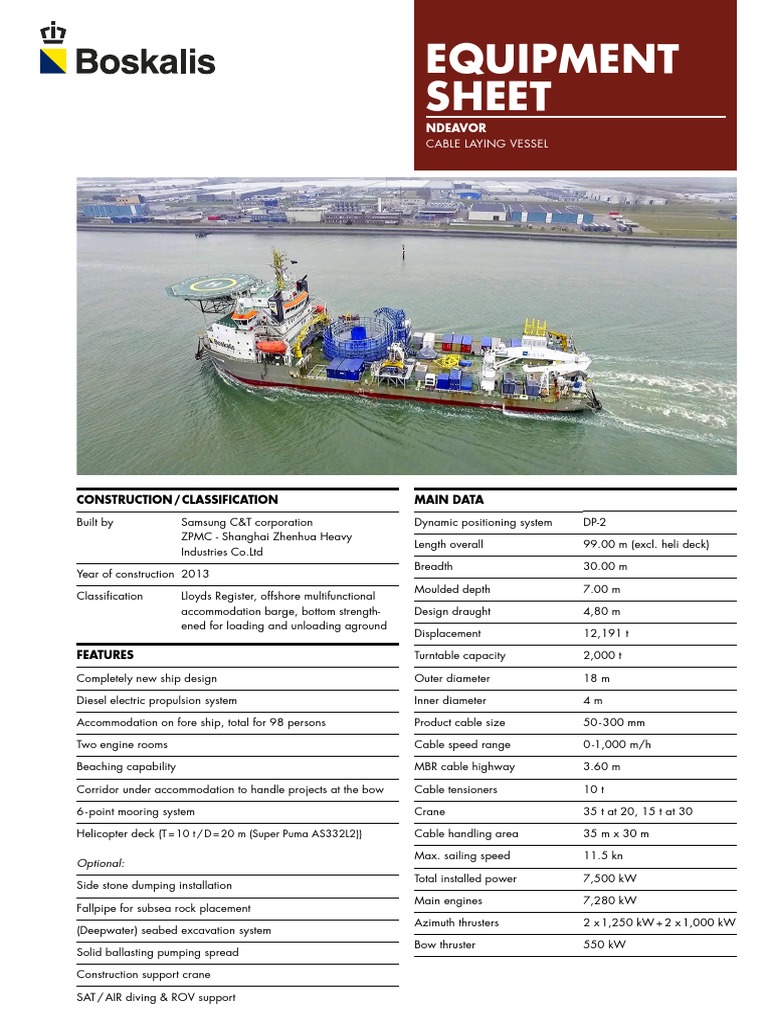 The information contained in this data sheet is for guidance purposes only and may be subject to changes. © Boskalis. All rights reserved.