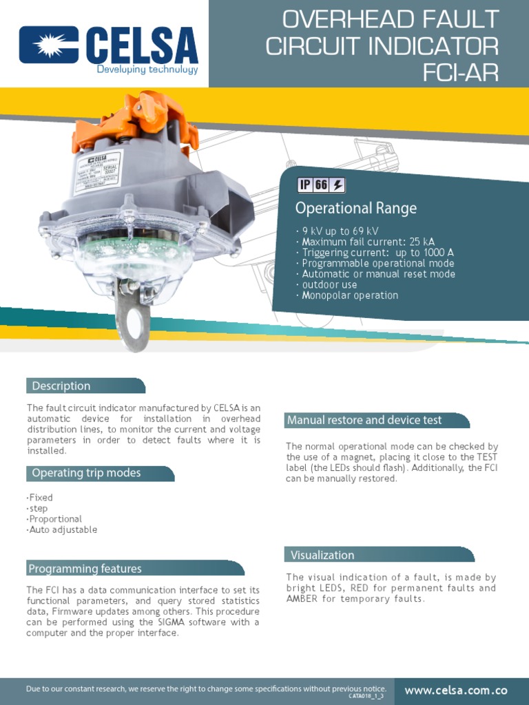 + Line voltage: 9 to 69 kV L-L The FCI uses long life lithium batteries (more than 10 years, storage