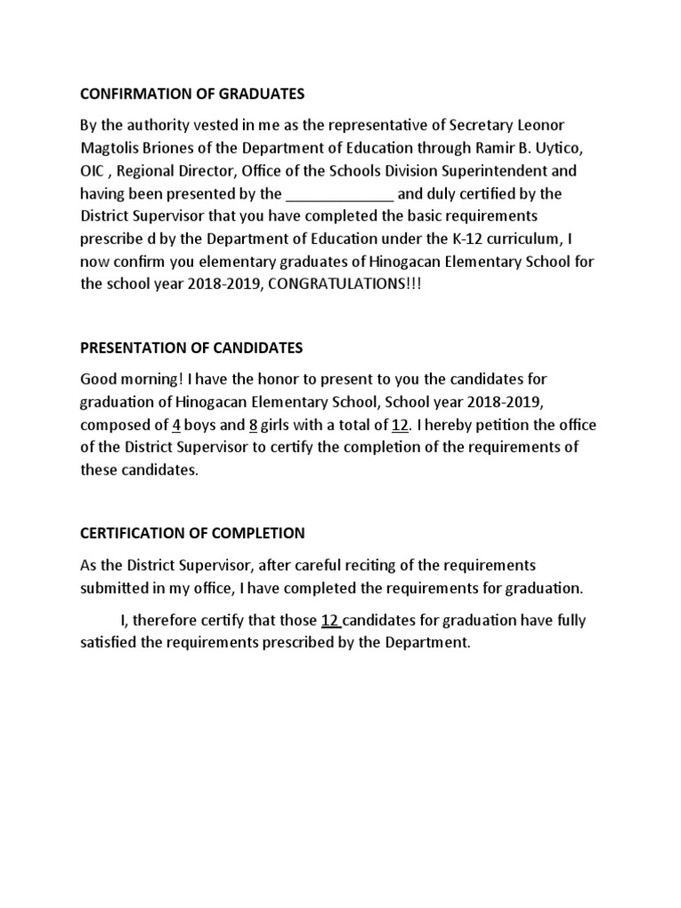 now confirm you elementary graduates of Hinogacan Elementary School for