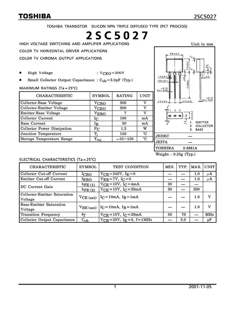 TOSHIBA TRANSISTOR SILICON NPN TRIPLE DIFFUSED TYPE (PCT PROCESS)