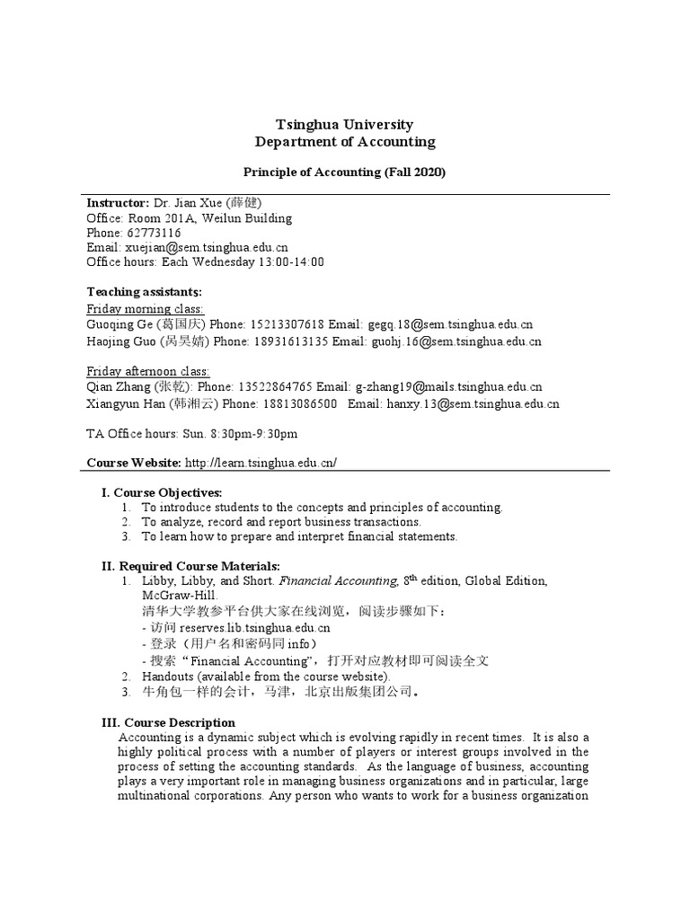 1. Course objectives relating to accounting content: Your instructor will emphasize