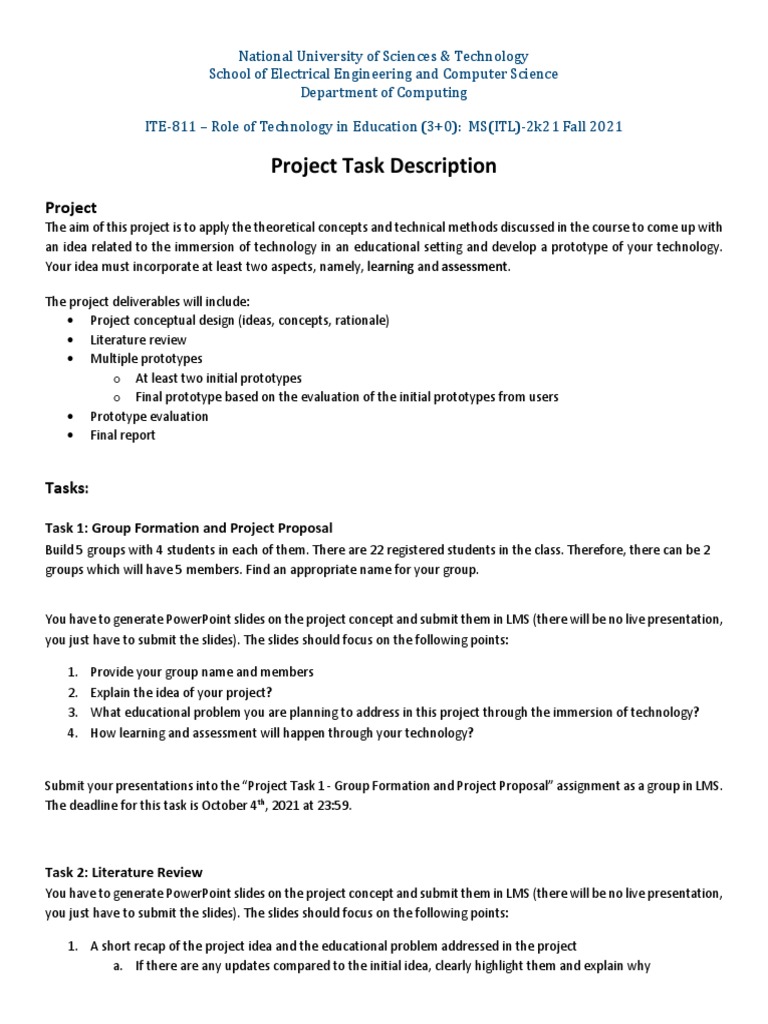 ITE-811 – Role of Technology in Education (3+0): MS(ITL)-2k21 Fall 2021