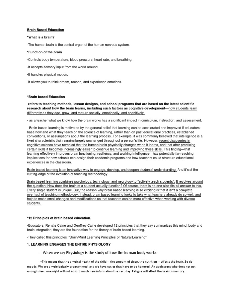 Brain based learning combines psychology, technology, and neurology to “actively teach students”. It revolves around