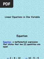 A linear equation in one variable is an equation in which there is only one variable present. It is of the